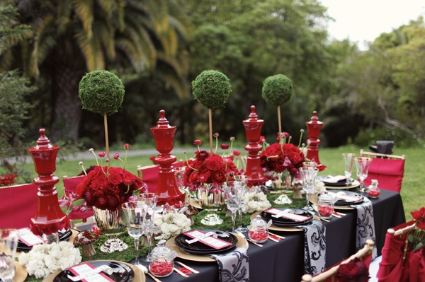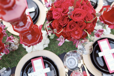 This wedding from Recycled Bride is so eyecatching and creative! I'm hosting an Alice In Wonderland Pokeno-themed party tonight, and I am so excited to use many of these ideas! I'm loving the reds & blacks complimented with gold! Of course it will not be complete with out china, tea cups and "Eat Me" "Drink Me" labels! Happy Wednesday! xoxo, Julie